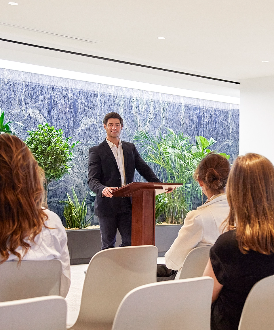The Board Rooms and Conference Room are part of the expansive 20,000-square-foot amenity space, thoughtfully designed to support meetings, presentations, and large-scale events with ease. With a capacity for up to 200 people, they offer a professional setting that balances sophistication with functionality. The room's flexible layout adapts seamlessly to conferences, workshops, panels, or private events, while integrated technology and modern finishes ensure it is fully event-ready.
